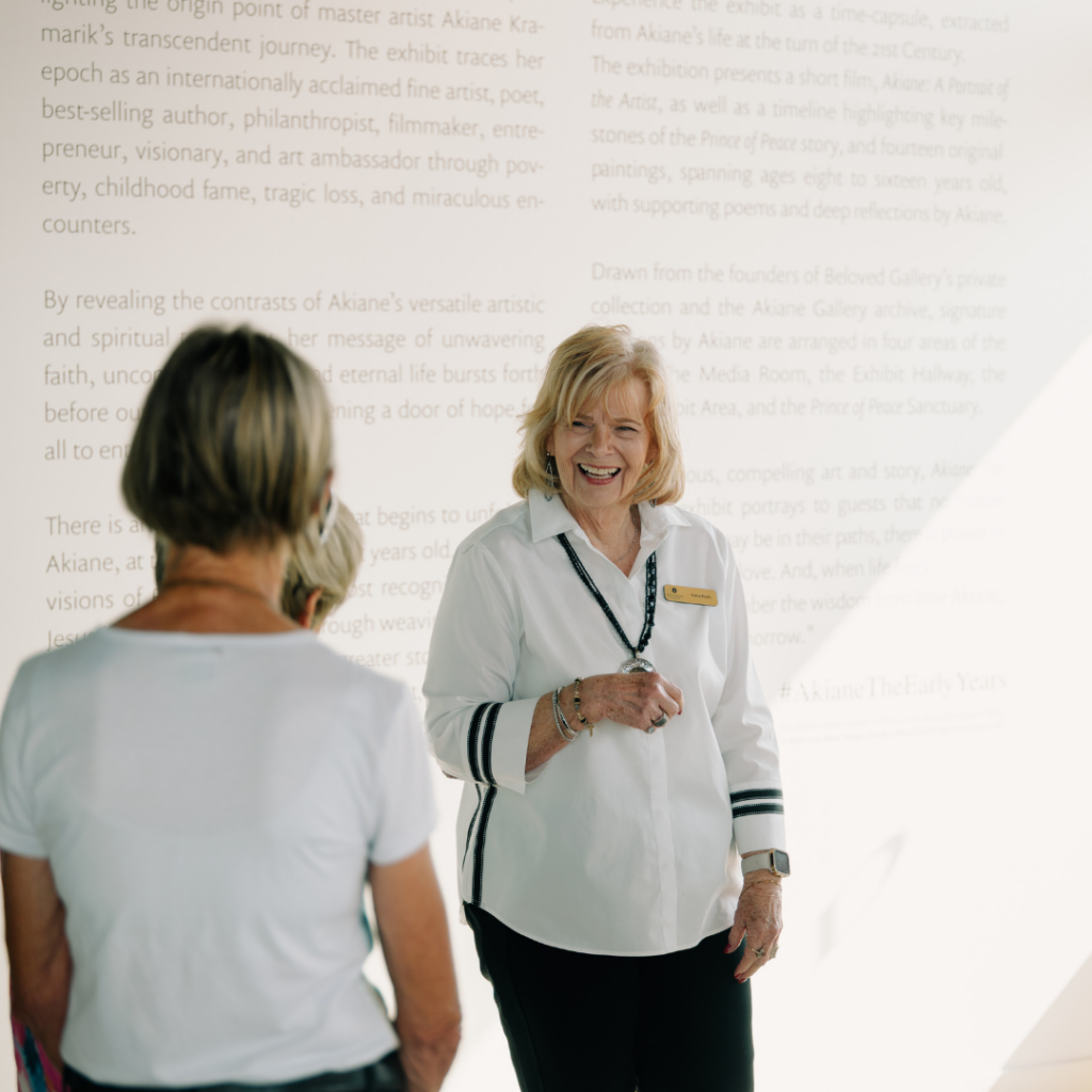 Come experience the unique and untold story of Akiane Kramarik and see the original world-famous Prince of Peace painting, completed by Akiane at age eight through a guided tour. Our goal is for one million people to experience the exhibition at no cost to our guests. We look forward to your visit.